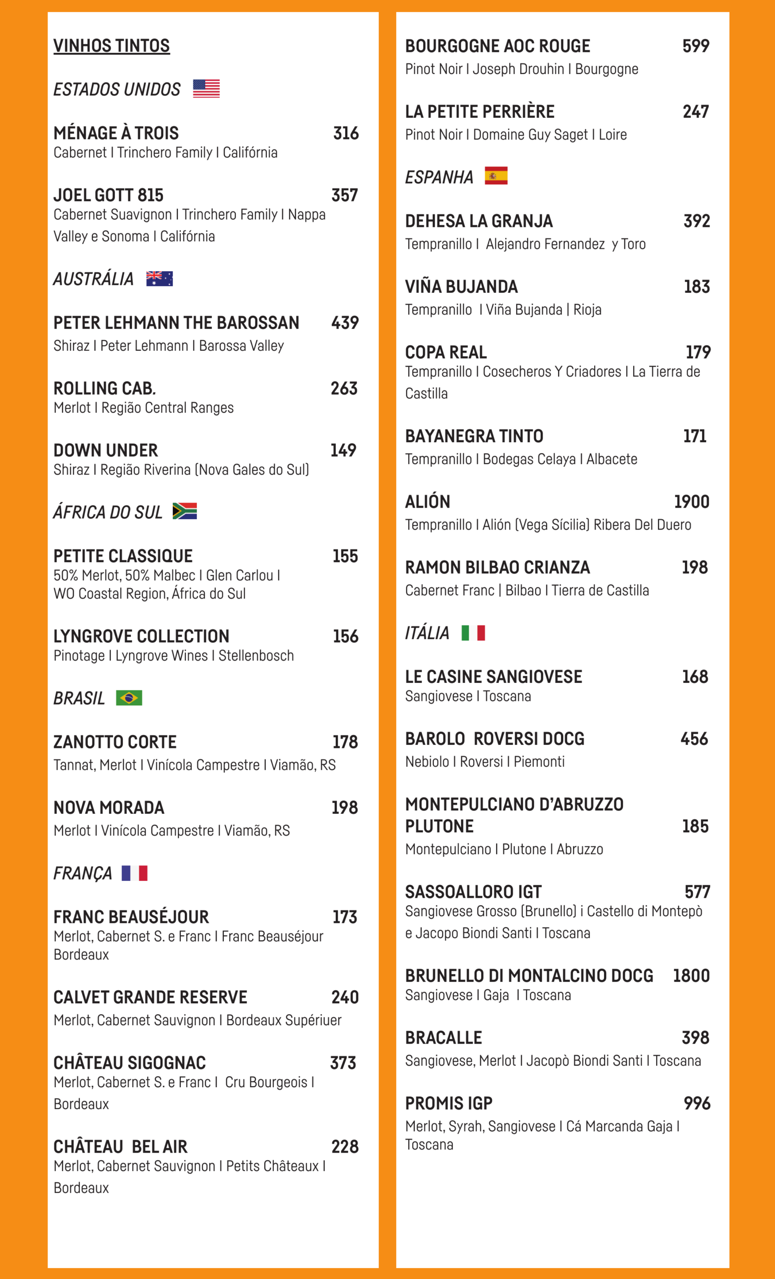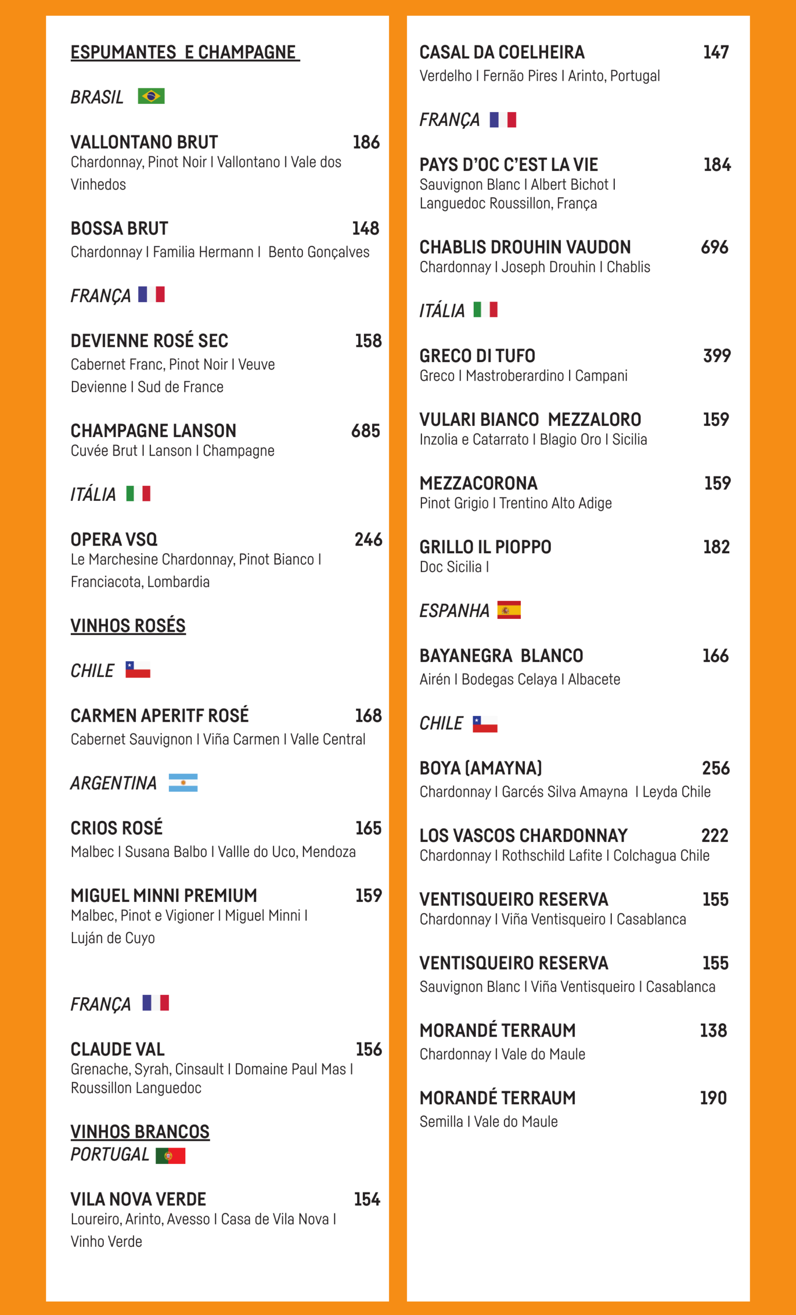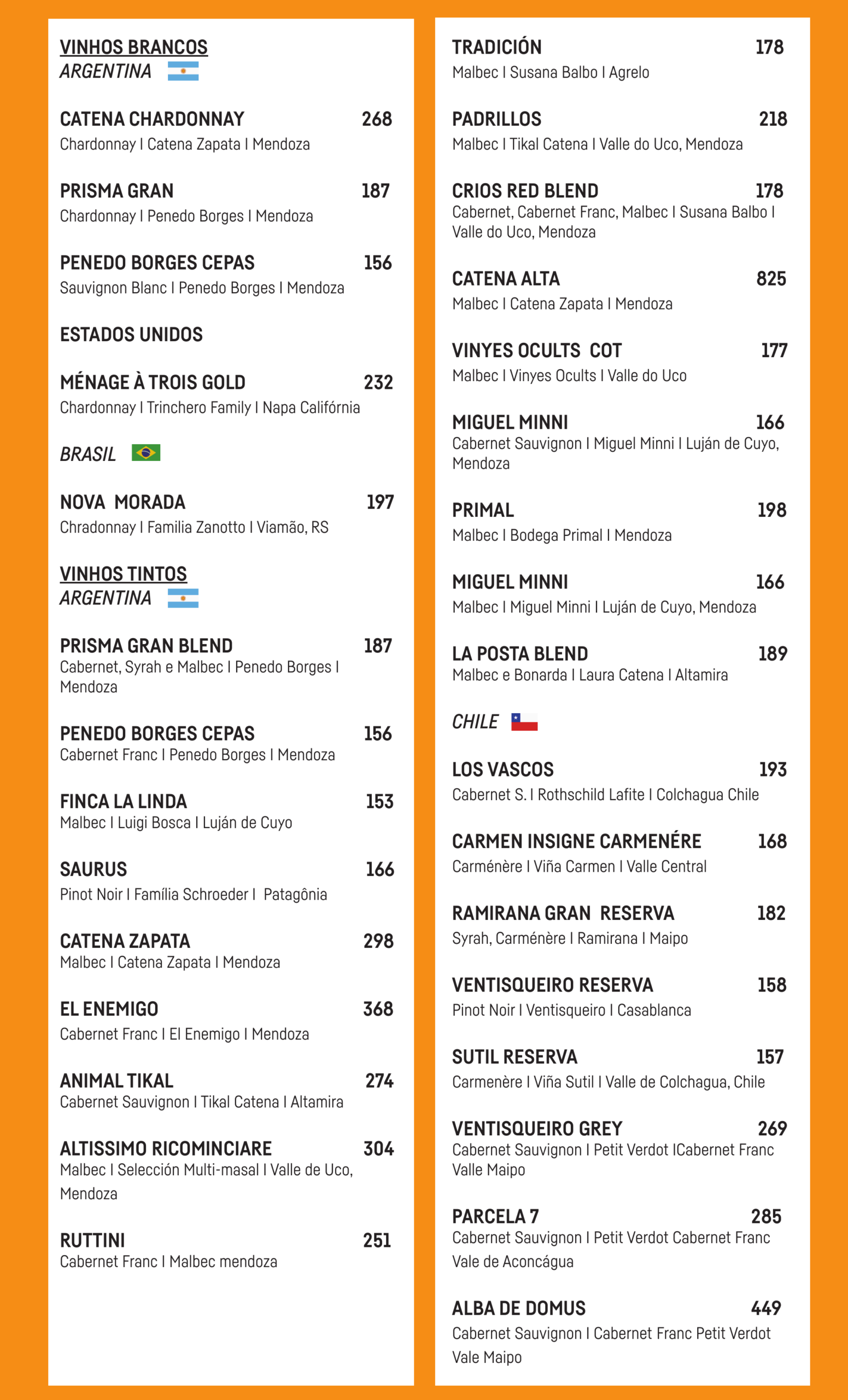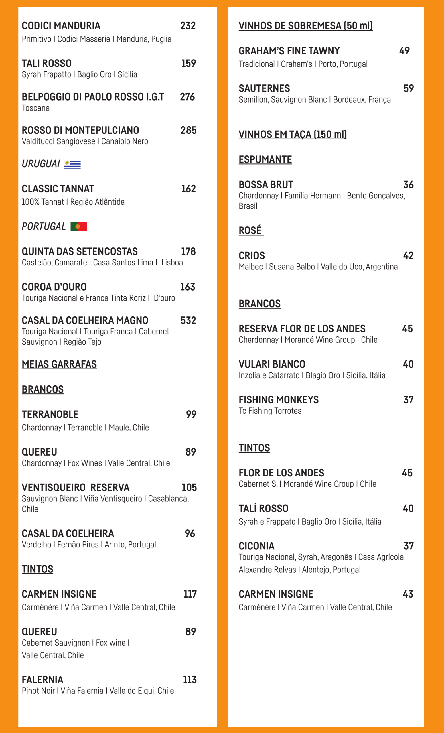 Carta de Vinhos