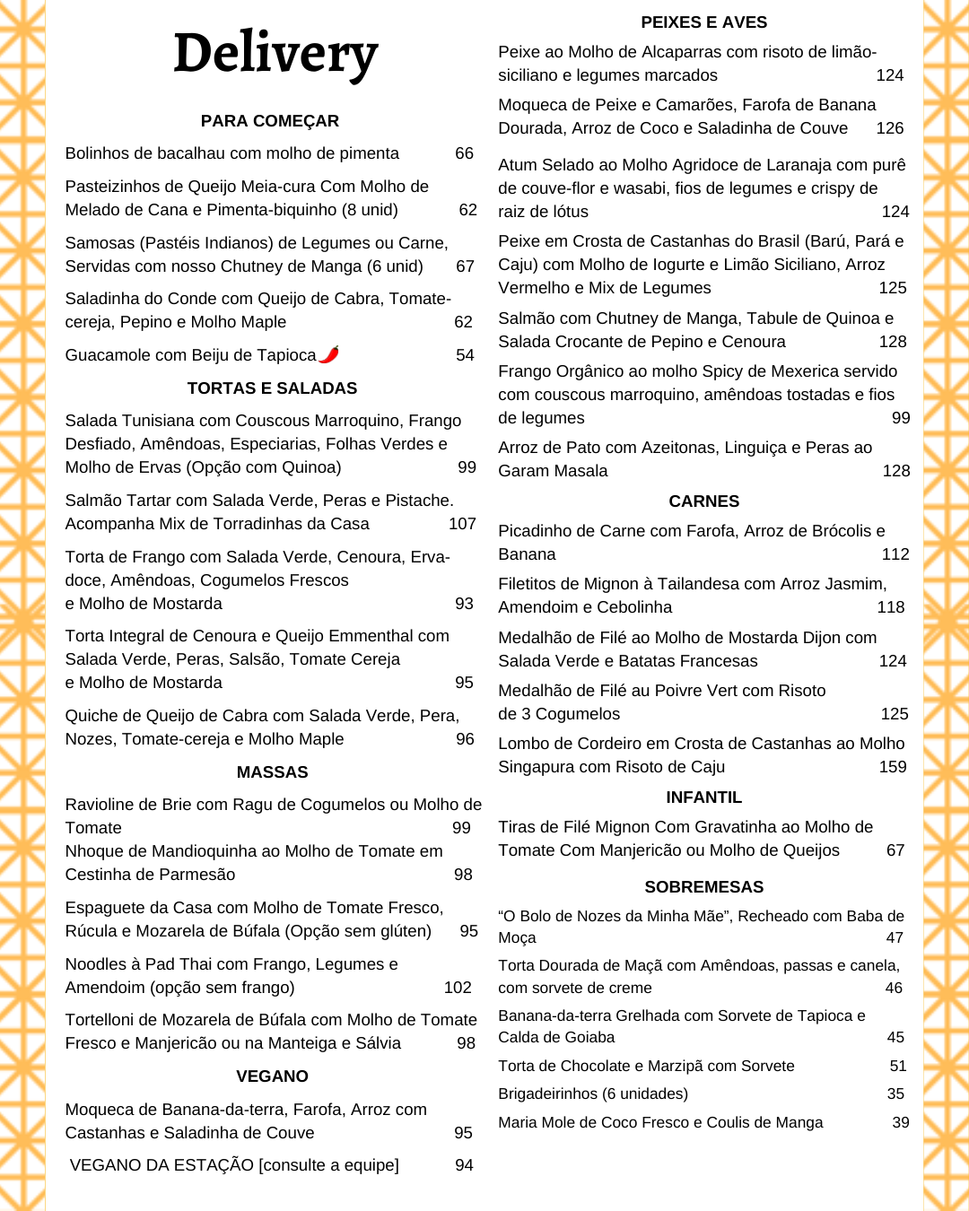 • Cardápio